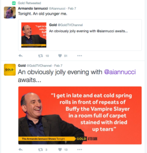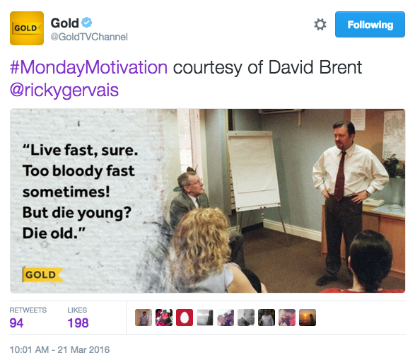 In my role as content writer for UKTV Gold, I wanted to get as much reach, exposure, and engagement from Gold’s celebrity connections.